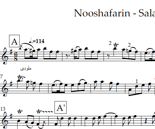 خرید نت و بکینگ ترک قطعه   سلام    تنظیم شده دقیق برای ساز ویولن بهمراه تکنیک های زیبا نوازی