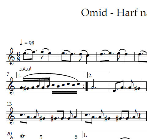 خرید نت و بکینگ ترک قطعه  حرف ناگفته   تنظیم شده دقیق برای ساز ویولن بهمراه تکنیک های زیبا نوازی