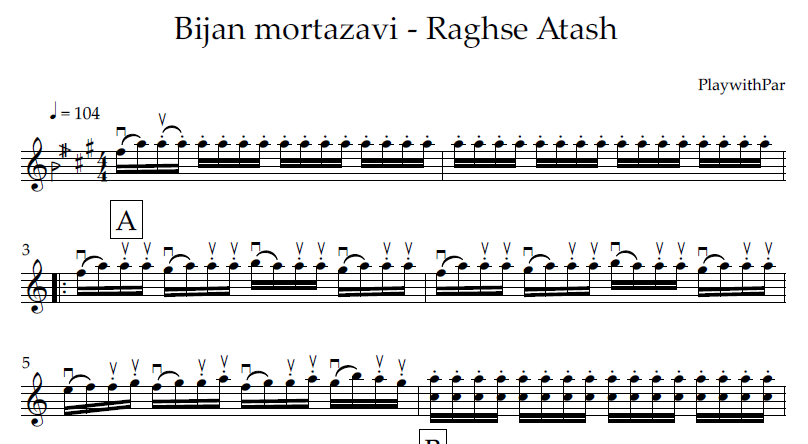 نت و بکینگ ترک قطعه رقص آتش از بیژن مرتضوی ( دو ورژن بهمراه بکینگ ترک های تمرینی )