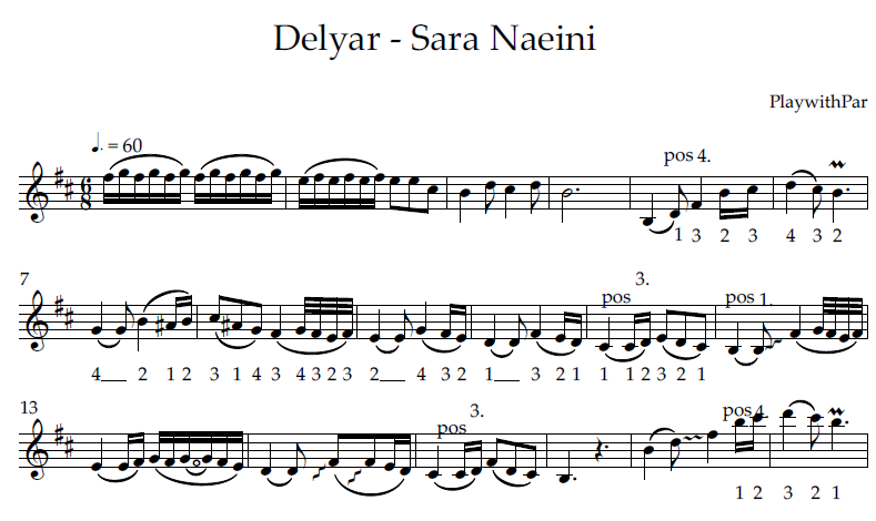 خرید نت و بکینگ ترک قطعه دلیار  تنظیم شده دقیق برای ساز ویولن بهمراه تکنیک های زیبا نوازی