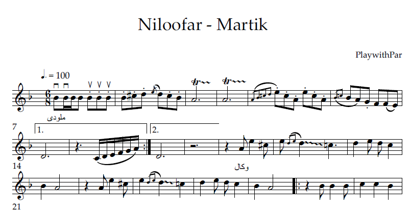خرید نت و بکینگ ترک قطعه نیلوفر  تنظیم شده دقیق برای ساز ویولن بهمراه تکنیک های زیبا نوازی